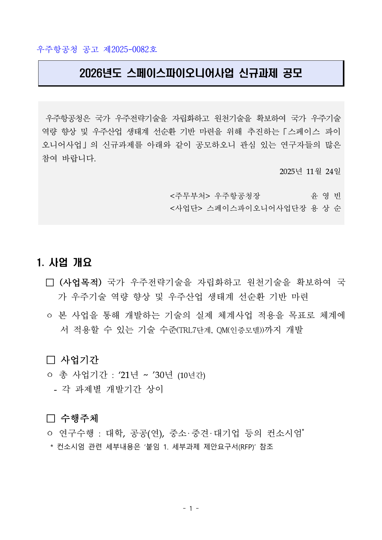 PDF문서2026년도 스페이스파이오니어사업 신규과제 공고문_최종.pdf